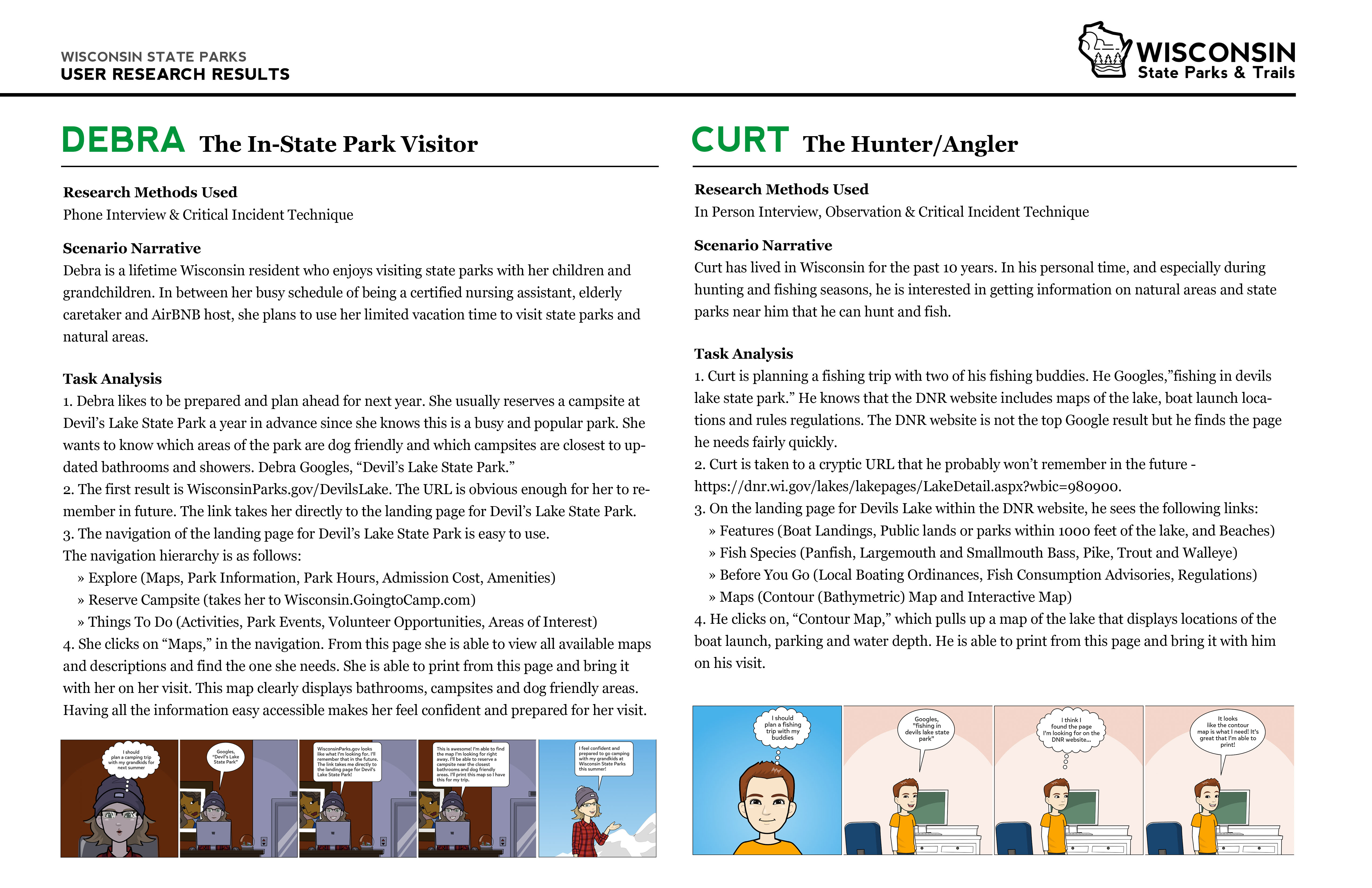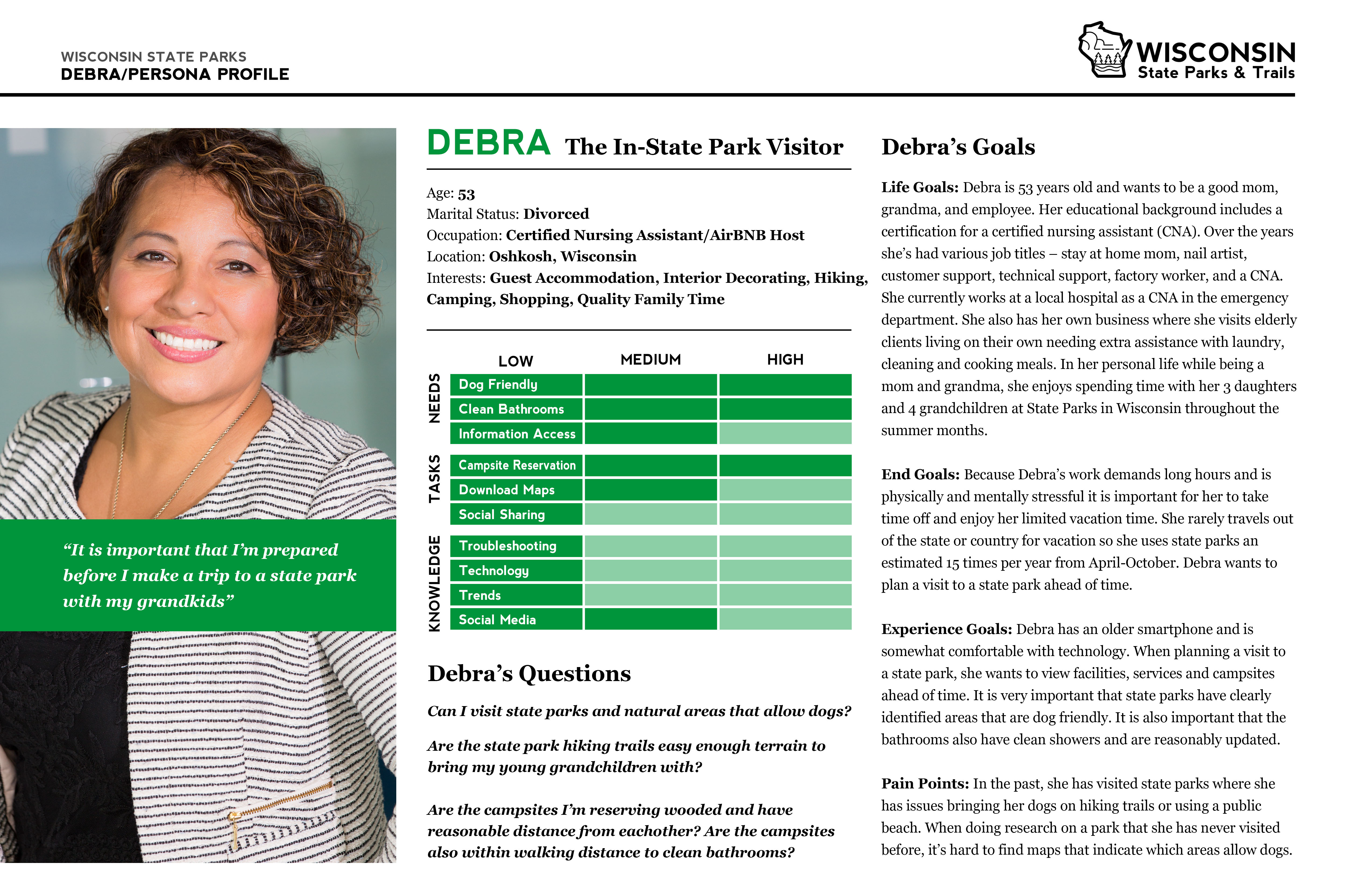 Identify personas to model, summarize and communicate research about users who have experienced visiting state parks.